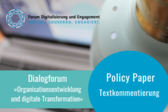 Im zweiten Teil des Policy Papers geht es daher um den Weg als Ziel in der Organisationsentwicklung. Der digitale Wandel macht deutlich, dass es nicht bei der Installation von Videokonferenz-Lösungen bleiben wird, sondern dass es um eine grundlegendere Transformation – um das Infragestellen und die Prüfung bislang etablierter Organisationsstrukturen, Prozesse und Arbeitsweisen geht. Dies gilt gleichermaßen für Haupt- und Ehrenamt, denn beides hängt unweigerlich zusammen und muss daher in der Ausrichtung, je nach Organisationstypus, entsprechend berücksichtigt werden. Die zielgerichtete Beschäftigung mit der Digitalisierung benötigt neben entsprechenden zeitlichen, finanziellen und personellen Ressourcen vor allem auch eine Wissensbasis und somit Aufklärung, Kompetenzen und Vernetzung. Die Frage bleibt, ob eine Digitalstrategie oder eine Strategie zur Digitalisierung eine unabdingbare Notwendigkeit für jede Organisation und Initiative darstellt. Fest steht: wer sie sich leisten kann, wird trotz des zunächst erhöhten Ressourceneinsatzes belohnt mit einer – auf lange Sicht – ressourcenschonenden und zielorientierten Wegweisung und Fortentwicklung der eigenen Organisation. Zu guter Letzt weist das Policy Paper auf die zentrale Rolle des bürgerschaftlichen Engagements für die Gestaltung einer innovativen, demokratiefördernden und gemeinwohlorientierten Digitalisierung hin. Dabei sieht das Paper in der Organisationsentwicklung die Chance, den Aufbau einer kompetenten, digitalsouveränen und einer sich stets weiterentwickelnden Zivilgesellschaft zu fördern.